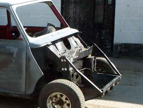 Shot of car when wheels were fitted showing brace bars