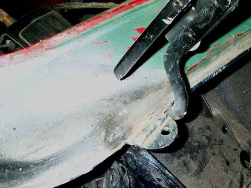 Hinge removed from car for cleaning up before painting and refitting .