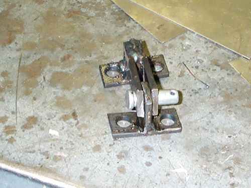 Some form of hinge was required and after looking around a number of hardware shops I decided that it would be easier to make them than adapt what was available. The hinges were manufactured from a strip of steel bar. A linchpin (large clevis pin) fastened with an R clip was used as the hinge pin.