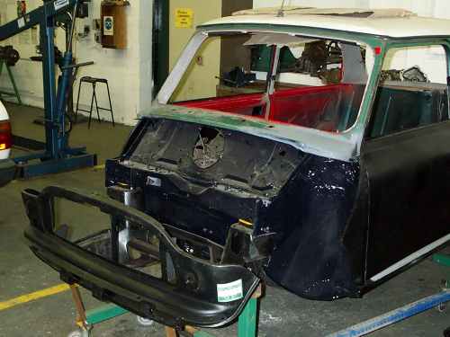 the body was completed the front subframe was bolted to the shell using